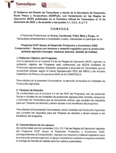 El Republicano Ayuntamiento de Abasolo, en coordinación con el Gobierno del Estado de Tamaulipas, informa a las y los productores agrícolas del municipio que se encuentra abierta la convocatoria para el programa Semilla de Calidad, enfocado en los cultivos de maíz, frijol y sorgo. Esta iniciativa, impulsada por el Dr. Américo Villarreal a través de la Secretaría de Desarrollo Rural,